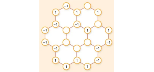 << Enunciado… Ler maisCopia e completa a figura seguinte, inserindo nos círculos vazios os números $ + 1$ ou $ – 1$ de modo que o produto dos seis círculos centrados nos vértices de cada um dos hexágonos seja sempre igual. Qual é esse produto?