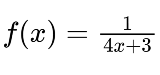 f(x)=\frac{1}{4x+3} & e & g(x)=\frac{2x-1}{(4x+3)(x-7)} \\