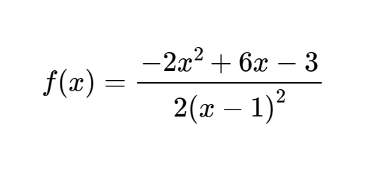 f é uma função racional definida em $\mathbb{R}\backslash \left\{ 1 \right\}$ por \[f(x)=\frac{-2{{x}^{2}}+6x-3}{2{{(x-1)}^{2}}}\]