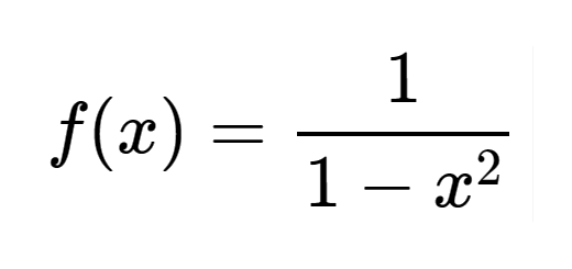 f é uma função racional definida em $\mathbb{R}\backslash \left\{ -1,1 \right\}$ por \[f(x)=\frac{1}{1-{{x}^{2}}}\]