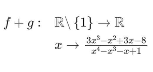 Mostre que $f+g$ é uma função racional e determine o seu domínio.