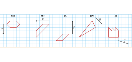 Em cada caso, desenha, no teu caderno, o transformado da figura pela translação de vetor \({\vec u}\).