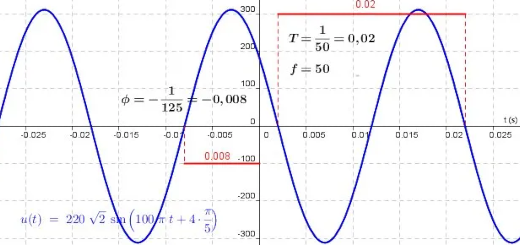 $$u(t) = 220\sqrt 2 \operatorname{sen} \left( {100\pi t + \frac{4}{5}\pi } \right)$$