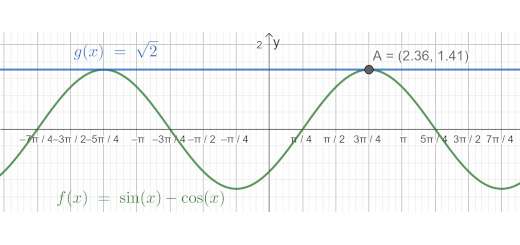 Determine o conjunto solução da equação $\operatorname{sen} \alpha – \cos \alpha = \sqrt 2 $.
