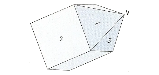 Como se vê na figura, três das faces do poliedro já estão numeradas, com os números 1, 2 e 3.