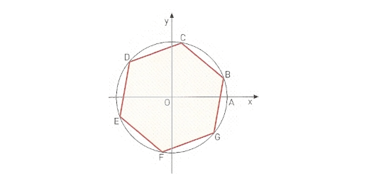 Sobre o círculo trigonométrico de centro O da figura está representado um hexágono regular. A amplitude positiva mínima do ângulo generalizado AOB é $\frac{\pi }{9}$ radianos.