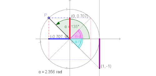 - Indique, em radianos, a amplitude dos seguintes ângulos generalizados: AOE, AOF e AOG.