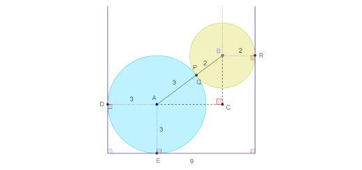 Duas esferas, de raios $2$ e $3$, estão encaixadas num recipiente cilíndrico de diâmetro $9$ (unidades em centímetro).