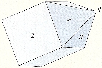 Como se vê na figura, três das faces do poliedro já estão numeradas, com os números 1, 2 e 3.
