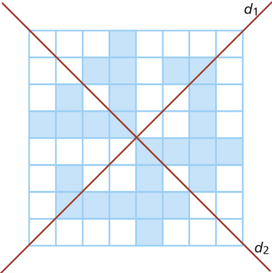 << Enunciado… Ler maisBasta pintar duas quadrículas para que d1 e d2 sejam os eixos de simetria da figura.