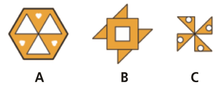 Analisa-as quanto à existência de simetrias de reflexão axial e de simetrias de rotação.