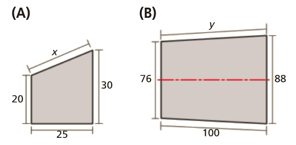 Observa as medidas, em milímetros, das bases de duas peças metálicas com a forma de trapézio.