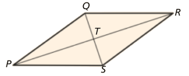 Considera um losango [PQRS], de perímetro 1 m, cujas diagonais se intersetam no ponto T.