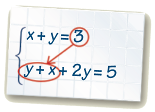 \[\left\{ {\begin{array}{*{20}{l}}{2x + y = \ldots }\\{3x – 2y = \ldots }\end{array}} \right.\]