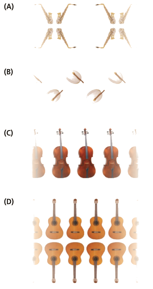 Observa os frisos com instrumentos musicais, elaborados pelo Manuel.