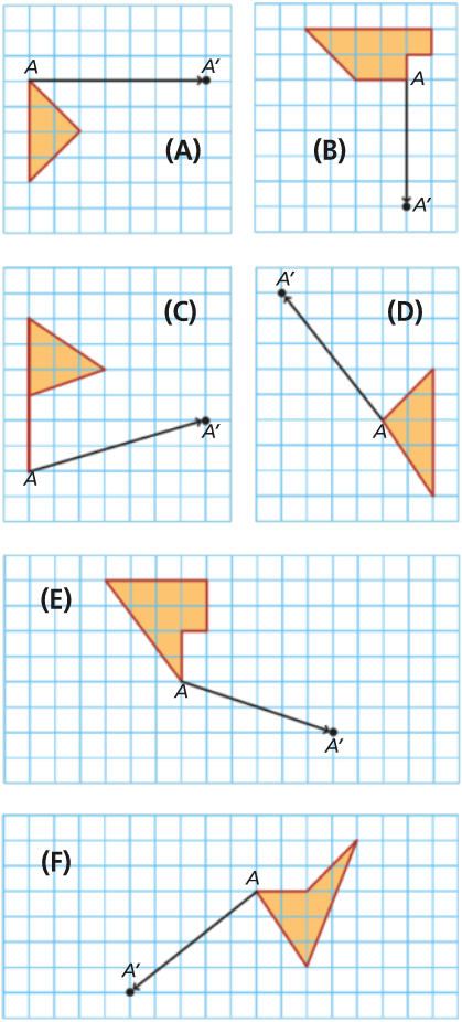 Constrói a imagem de cada um das figuras pela translação que ao ponto A faz corresponder o ponto A’.