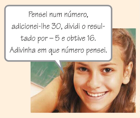 e obtive $16$ | $\left( {A + 30} \right) \div \left( { – 5} \right) = 16$ | |