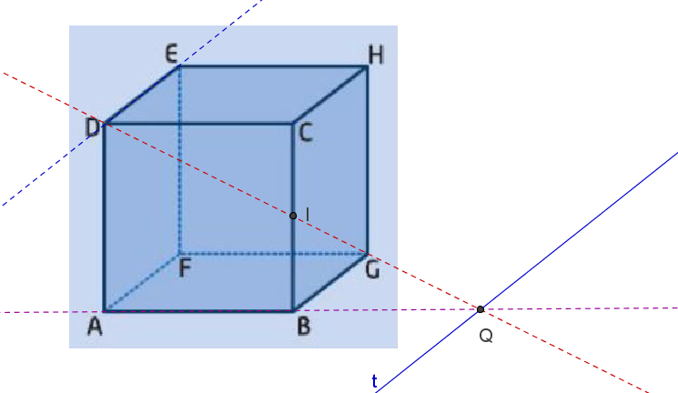 Como a reta DI pertence ao plano DEI, então o ponto Q é também um ponto deste plano.