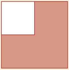 O quadrado branco tem de área $25$ cm2 e o seu lado mede metade do comprimento do lado do quadrado castanho.