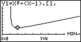 De acordo com a indicação fornecida pela ferramenta adequada da calculadora, a função admite $4$ como mínimo absoluto, para $x = 2$.