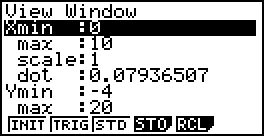 - Apresenta-se, de seguida, uma representação gráfica da função e a indicação da janela de visualização.