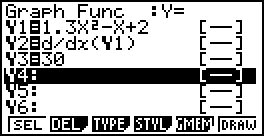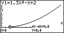 Também se pode obter esse valor na calculadora gráfica, ativando a opção “Derivative”, conforme se ilustra na imagem ao lado.