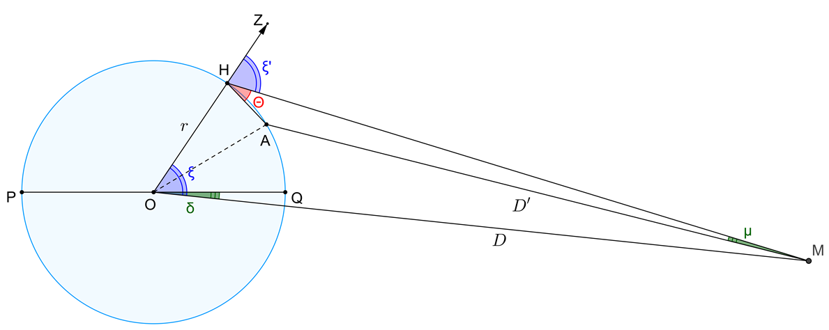 - Paralaxe lunar: \(\mu = 0,1^\circ \)