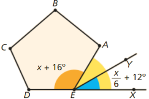 Na figura, AEX é um ângulo externo de um pentágono [ABCDE] e \(\dot EY\) é a bissetriz desse ângulo.