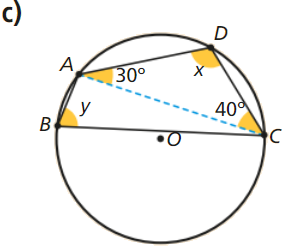 \[y = A\widehat BC = 180^\circ – A\widehat DC = 180^\circ – 110^\circ = 70^\circ \]