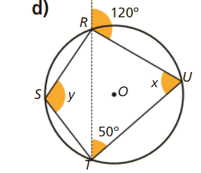 \[x = R\widehat UT = 120^\circ – R\widehat TU = 120^\circ – 50^\circ = 70^\circ \]