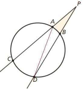 \[C\widehat DP = \frac{{\overparen{CD} – \overparen{AB}}}{2} = \frac{{90^\circ – 30^\circ }}{2} = 30^\circ \]