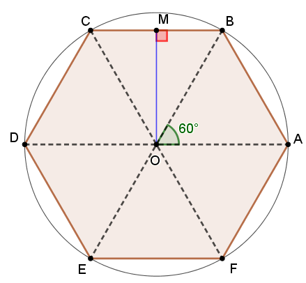 - Da prova anterior, resulta que são iguais o comprimento do lado do hexágono e o comprimento do raio da circunferência circunscrita ao hexágono.