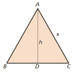 - Considera o seguinte triângulo equilátero [ABC] de lado x no qual foi traçada uma das suas alturas.
