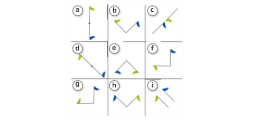 \[\begin{array}{*{20}{l}}{{\mathop{\rm tg}\nolimits} A\widehat BC = \frac{{\overline {AC} }}{{\overline {AB} }}}& \Leftrightarrow &{{\mathop{\rm tg}\nolimits} A\widehat BC = \frac{2}{7}}\\{}& \Leftrightarrow &{A\widehat BC = {{{\mathop{\rm tg}\nolimits} }^{ – 1}}\left( {\frac{2}{7}} \right)}\\{}&{}&{A\widehat BC \approx 16^\circ }\end{array}\] - A reta CF, por exemplo.