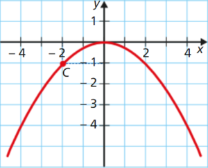 Portanto, a função f pode ser definida por \(f\left( x \right) = – \frac{1}{4}{x^2}\).