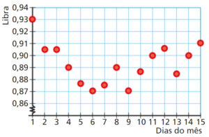 O gráfico mostra o valor de 1 euro na moeda inglesa, a libra, durante os primeiros 15 dias do mês de fevereiro.