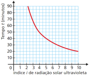 - De acordo com o gráfico, se o tempo máximo de exposição era de 25 minutos, então o índice de radiação solar ultravioleta nesse dia era 8.