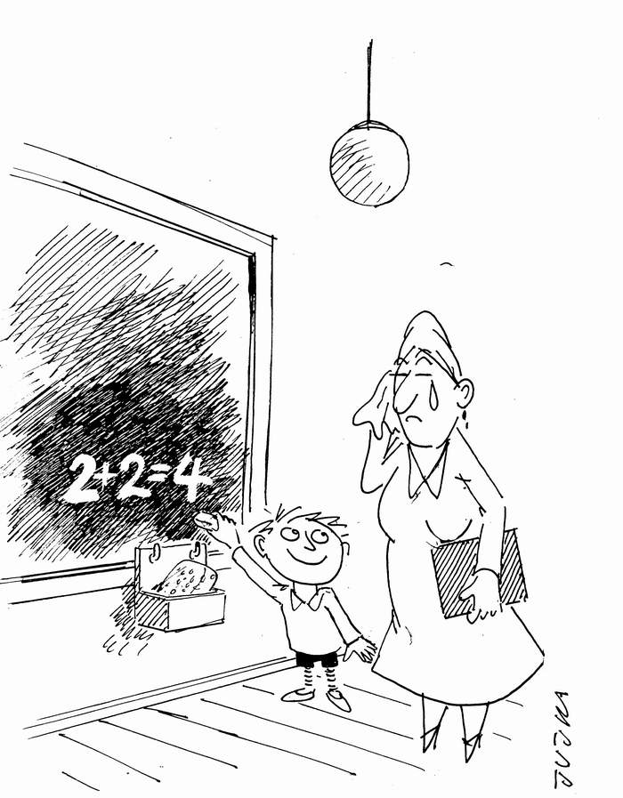 Este cartoon ainda permanece colado no vidro da porta do Laboratório de Matemática.