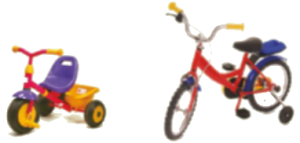 Uma fábrica produz triciclos e bicicletas para crianças, como os da figura abaixo.