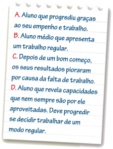 Registou a sua apreciação sobre os quatro alunos na folha ao lado para entregar à Diretora de Turma.