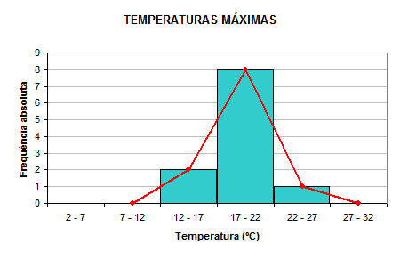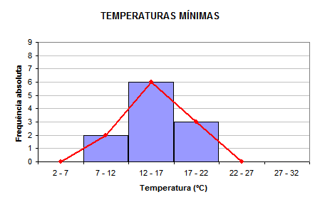 Elabora tabelas de frequências, agrupando os dados em classes para as temperaturas mínimas e para as temperaturas máximas (usa classes de amplitude 5).