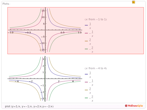A título de exemplo, apresentam-se ainda mais algumas funções cujos gráficos são hipérboles: