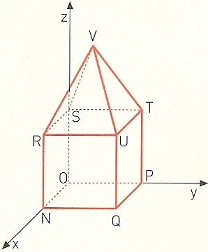 - Os vértices que pertencem ao plano de equação $y=x$ são: O, Q, U, V e S.