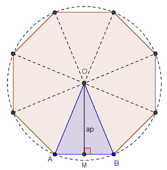 - o octógono foi dividido em oito triângulos isósceles, congruentes entre si;