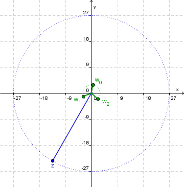 {{z^3} + 27\operatorname{cis} \frac{\pi }{3} = 0}& \Leftrightarrow &{{z^3} = – 27\operatorname{cis} \frac{\pi }{3}} \\