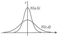 estão representados os gráficos de duas distribuições normais. Qual das afirmações seguintes é verdadeira? [A]