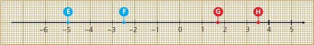 a) Indica a abcissa de cada um dos pontos representados. b) Representa na recta orientada os seguintes pontos: ; ; e . 3. Completa com os símbolos , , , , , ou de forma a obteres afirmações verdadeiras: 4. Sem simplificares a escrita, efectua as seguintes operações e apresenta o resultado na forma mais simples: a) b) 5. Transforma as subtracções em adições e, sem simplificares a escrita, efectua as operações, apresentando o resultado na forma mais simples: